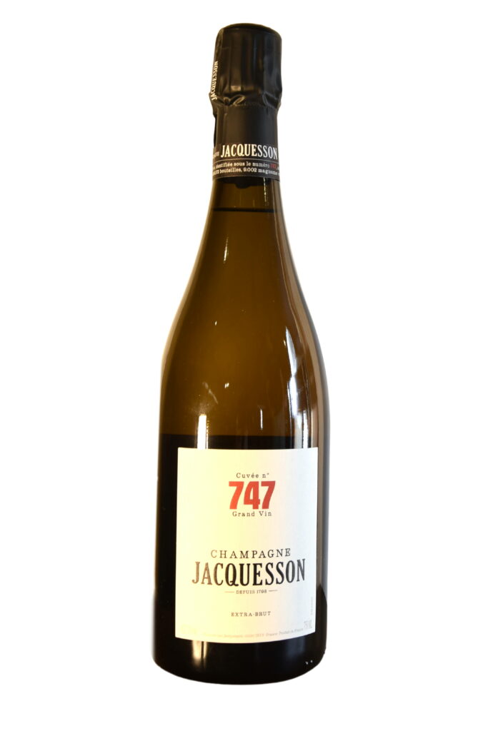 Jacquesson Cuvée 747 Extra Brut: espressione pura del 2019, dosaggio 1,5 g/l e perlage finissimo. Champagne di precisione, minerale e coinvolgente.